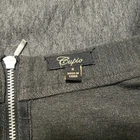 This is a Cupio women's gray skirt in size S, featuring a faux leather strip pattern on a quilted knit fabric in an A-line style. It has a zip closure and is machine washable. The skirt is knee-length, has a high rise, and is lightweight, making it suitable for various occasions like travel, weddings, parties, or casual wear. Perfect for all seasons, this skirt offers a stylish and versatile addition to any wardrobe.