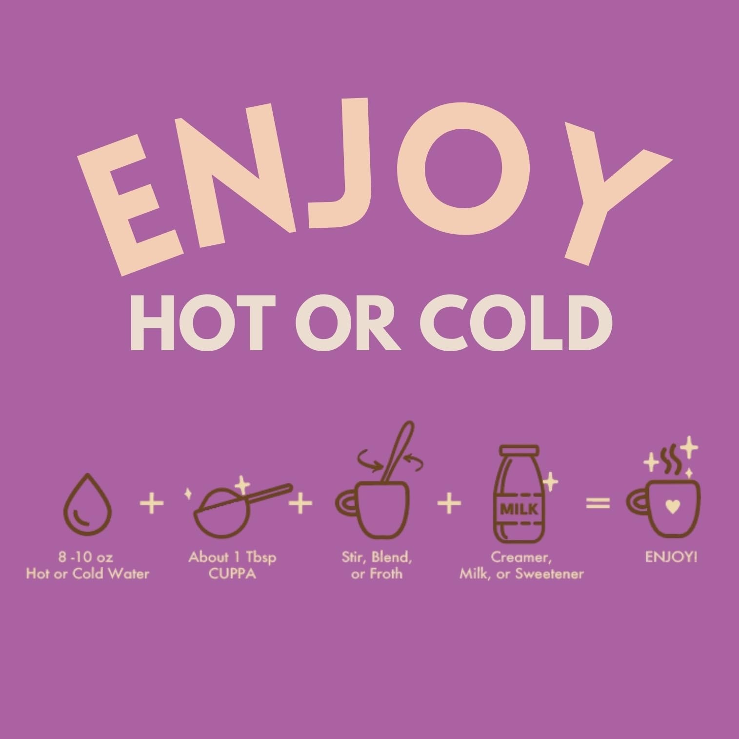 Cuppa Salted Caramel Mushroom Coffee with Adaptogens & 7.8 Ounce (Pack of 1) Description Finally, a mushroom coffee that actually tastes like coffee! Cuppa Healthy Coffee is the super food coffee you've been waiting for. All the great coffee flavor paired with Ashwagandha, Mushrooms, L-Theanine and MCT without tasting like mushrooms! Features: ACTUALLY TASTES GOOD: Finally, a mushroom coffee that actually tastes like coffee! We offer a medium roast with a full flavor profile that contains notes of chocolate, nuts and strawberry crumble. You will NOT taste mushrooms. Plus, we deliver the buzz without the bad stuff! No dairy, gluten, GMOs or sugar. Just great tasting mushroom coffee made with premium functional ingredients! LONG LASTING ENERGY: Our Healthy Coffee Blend will fuel you all day without the crash or jitters. We've combined our premium 100% Arabica Coffee with MCT & L-Theanine to combat jitters and smooth out the energy surge and leave you feeling great all day! BRAIN & MOOD BOOST: We've added KSM-66 Ashwagandha and Organic Lion's Mane & Cordyceps for enhanced focus, great mood, sleep support, immune support, stress resillience and stamina. Our mushroom extracts are certified 100% organic fruiting bodies. They do not have any added starch, grain,or mycelium. Big day ahead? No problem when you've had your Cuppa in the morning! HOW TO ENJOY: Add 1 scoop of Cuppa Healthy Instant Coffee to 8-10oz of hot or cold water, stir or froth, add creamer or milk. Enjoy hot or over ice. Our Healthy Instant Coffee dissolves easily in hot or cold water and leaves no sediment at the bottom of your cup! Product Details: Handling We will ship all orders within 1 business day of payment. Delivery We Do Not Ship Outside of the Continental US. Return Policy All items qualify for returns within 30 days of receipt. Buyer is responsible for return shipping on any item that is not damaged. Feedback We take our reputation seriously, we buy and sell online, so we understand the value of trust. If you are unsatisfied with your order, please contact us and we will work with you to resolve it to your satisfaction.