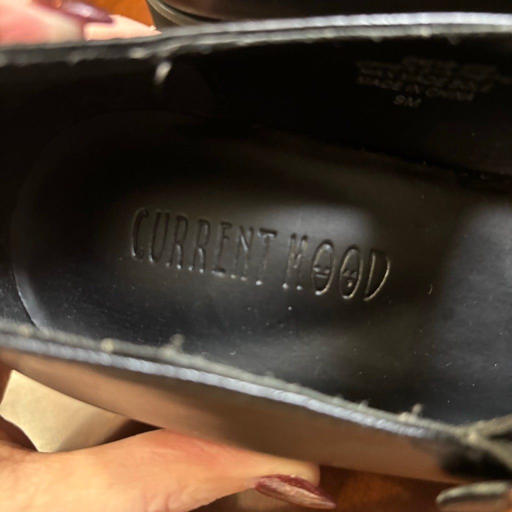 Condition: Excellent pre-owned condition. Light signs of wear on soles and heel edges (shown in photos). No major flaws. Clean uppers. Smoke-free home. Details: • Brand: Current Mood • Style: Chunky platform Mary Jane • Color: Black • Upper: Synthetic • Outsole: Manmade • Closure: Adjustable buckle strap with silver hardware • Size: 9M • Made in China • Lug sole grip bottom Measurements: • Heel height: ~3.0” • Platform height: ~1.5” These grunge-inspired Mary Janes give major 90s / Y2K energy. Perfect for goth, alt, e-girl, and festival outfits. Super trendy and hard to find. Ships fast from a smoke-free home. #CurrentMood, #PlatformMaryJanes, #MaryJaneShoes, #ChunkyHeels, #LugSole, #GothStyle, #GrungeFashion, #AltStyle, #EGirlOutfit, #Y2KStyle, #90sFashion, #PlatformShoes, #BlackMaryJanes, #AlternativeFashion, #TrendyShoes, #GothicFashion