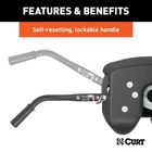 https://ebaystores.s3.us-east-2.amazonaws.com/trendsauto/Curt/CURT-16066-1.jpg Curt A25 Fifth Wheel Hitch Head and Legs for 16-19 Silverado Sierra 2500 16066 PART NUMBER: 16066 BRAND: Curt DESCRIPTION Curt A25 Fifth Wheel Hitch Head & Legs The CURT A25™ 5th wheel hitch offers smoother, quieter towing for your home-away-from-home, combining the patented technology of our A-series™, an easier mounting system and the power of a 25K 5th wheel hitch. Like our A16™ and A20™ hitches, this 25K 5th wheel hitch uses a patented cast yoke to allow for unimpeded head movement, while providing exceptional stability for the trailer. The yoke has a set of poly-torsion inserts to suppress shock loads and reduce excessive noise, and the head features high-strength, interlocking jaws to give the trailer stability and the freedom to pivot and swivel as needed. This A25™ 5th wheel hitch also comes with a set of CURT OEM puck system 5th wheel legs designed to be mounted on select Chevrolet or GMC long-bed pickup trucks with the truck bed puck system (year range specific). The legs mount directly into the four-point mounting system, allowing the CURT A25™ hitch to be installed quickly and easily. The most unique feature of these legs is their quarter-turn anchoring system. The variable-position anchors allow the 5th wheel hitch head to easily drop into the puck system, and with a quarter-turn, the hitch can be installed or removed as needed. The anchors can also be adjusted to eliminate any chucking noises. Once installed, the A25™ is fast and simple to operate. It features an extra-wide head opening to increase the coupling area for the trailer, and it has a lockable, single-throw handle that self-resets to the ready-to-couple position after uncoupling. To make coupling even easier, it is equipped with a coupling indicator that is visible from the truck cab. The indicator shows the status of the connection and eliminates the need for you to check multiple times while coupling. To protect the A25™ 5th wheel hitch against rust, wear and whatever other threats might impede your cross-country tour, it comes with a carbide black powder coat finish and a limited lifetime warranty. We also test the A25™ for safety in accordance with SAE J2638 to ensure reliability for the road ahead. Features: Cast yoke with poly-torsion inserts to suppress shock loads and reduce noise Fully articulating torsion head for controlled coupling and stable towing Lockable handle self-resets to the ready-to-couple position after uncoupling Constructed with a cast steel main body for a more precise build High-strength, interlocking jaws fully wrap the kingpin to minimize noise Extra wide head opening for easier coupling Fast, one-pin head removal makes moving easy with smaller, lighter pieces Three-position coupling indicator clearly shows coupling status Quarter-turn anchoring system provides quick installation and removal Compatible with kingpin extension boxes, including common pivoting pin boxes Offers three height adjustment positions to adapt to each unique truck bed Includes a polyethylene lube plate to eliminate messy grease deposits Tested for safety in accordance with SAE J2638 Protected by a highly durable carbide powder coat finish Limited lifetime warranty (one-year finish, one-year parts) Specifications: Color: Black Finish: CARBIDE BLACK POWDER COAT Gross Trailer Weight (GTW): 25,000 LB Head Series: A-Series Hub Warehouse: D25 Installation Height: 13" - 17" Material: Blank Part Type: * Product Weight: 176.000 Shipping: Freight Only Shipping Weight: 176.000 Vertical Load: 6,250 LB NOTES: Includes A25 5th wheel hitch head #16580 and GM puck system legs #16025 (requires GM puck system for installation) (patent# 8,827,298) Intended for long-bed trucks only. Each truck-trailer configuration is different. Be sure to review each configuration and always ensure adequate trailer-to-cab clearance when maneuvering. Capacity limited to lowest-rated towing component