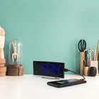 Sold as 1 Each. Curved LED with bright 1.8” time display. Dual Alarms. 4 Time Zone setting (EST, CST, MST, PST). Accurate Atomic time (manual set option) and automatic updates for Daylight Saving Time (on/off option). Programmable snooze (5-60 minutes). 5.0v AC adapter (included) or backup 1 CR2032 battery (included). 1 AMP USB Charging Port (charge cable not included). Adjustable alarm volume (HI/LO). 1 year limited manufacturer's warranty. 4 Stage Ascending Alarm. Adjustable LED brightness (HI/LO/OFF).