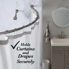 Item Description From Seller Curved Wall Mounted Shower Curtain Rod in Satin Nickel Adjustable 44 in to 72 in Designed to securely hold curtains and drapes Made of iron with water- and rust-resistant finish for durability Curved design to add extra room to your shower Upgrade your bathroom decor with this elegant Bath Bliss Curved Shower Rod with Stainless Steel Finish. This high-quality wall mounted rod installs easily in most standard showers, tubs or closets. It provides 33% more space than a straight bar and has a rust-resistant finish. This curved shower curtain rod comes complete with hardware for a quick and easy installation. Adjustable dimensions: 44 in. to 72 in. Hardware included, easy to install Easily adjustable to needed size Holds curtains and drapes securely Curved shower curtain rod adds extra room to your shower Glossy chrome finish Water and rust resistant 33% more space than straight rod