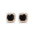 Cushion Cut Simulated Black Diamond Women's Christmas Stud 14KYellow Gold Plated