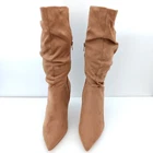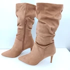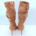Meet Porsha, a slouch heeled boot. Featuring a soft vegan suede upper with a side zipper and padded memory foam insoles, Porsha provides both style and comfort for your feet. Porsha's 8 inch boot shaft is designed to hit mid-calf, with a heel height of 3 inches. These are brand new and are a size 10 wide. Please check out my other listings for more of this brand in different sizes and styles. Thanks