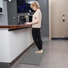 This kitchen mat is a game-changer! The cushioned support makes long hours standing so much easier, and the non-slip grip keeps it firmly in place. Love that it’s waterproof and easy to clean—spills wipe right off. The grey color fits any decor, and the thickness is perfect for comfort. Great for kitchens, laundry rooms, or even home offices. Highly recommend for anyone who spends a lot of time on their feet!