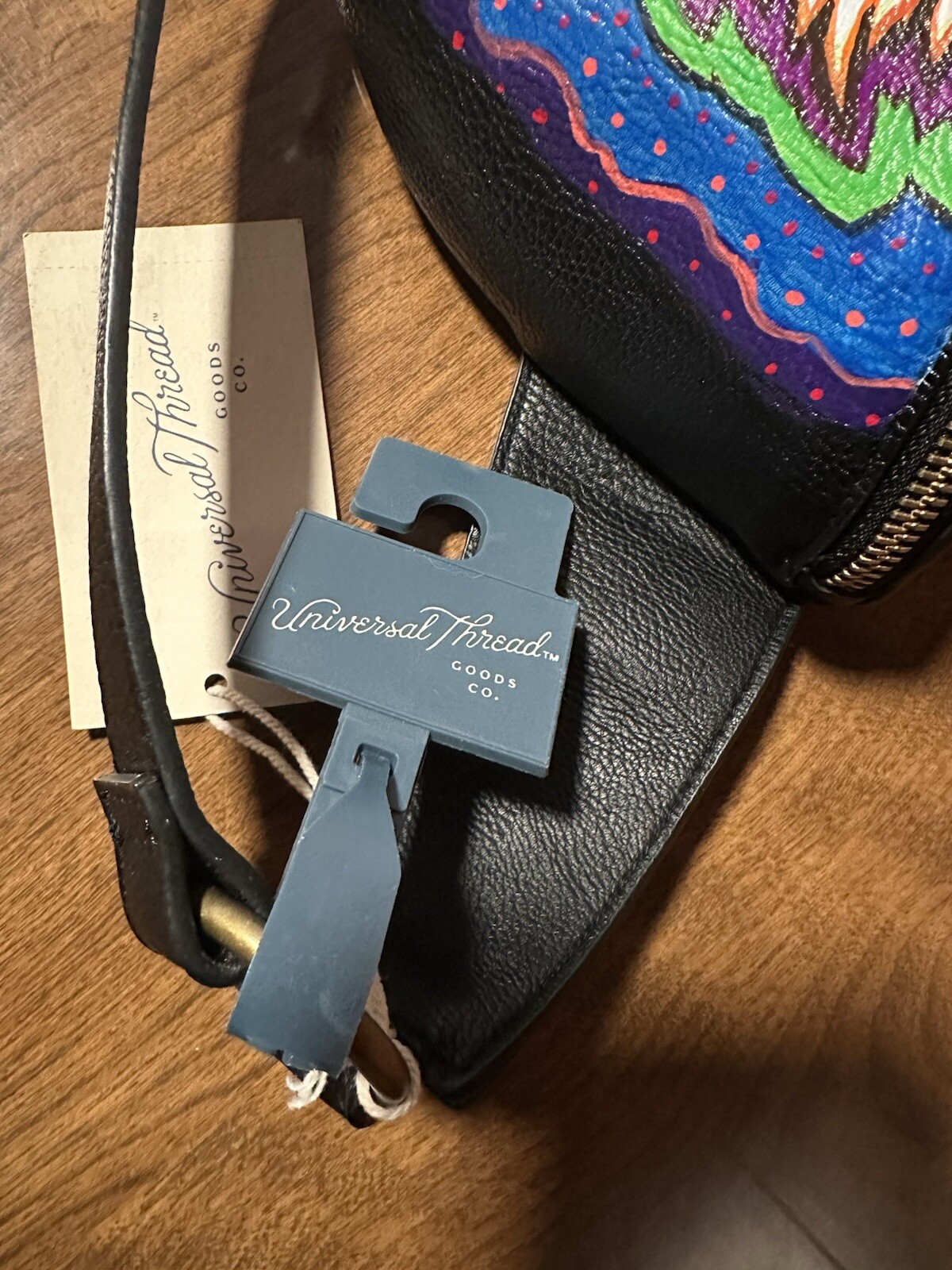 New with tags Universal Threads belt bag with hand painted Louis Wain inspired cat face. Angelus leather paints, heat set, with acrylic finisher to resist cracking and peeling with normal use. Clean with soft damp cloth. Neon Colors are black light/UV reactive for glow effect in UV light.