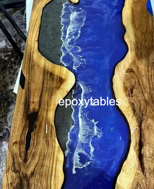 Custom Black Epoxy Resin Live Edge Wooden Coffee Side Table Top Center Table Dec