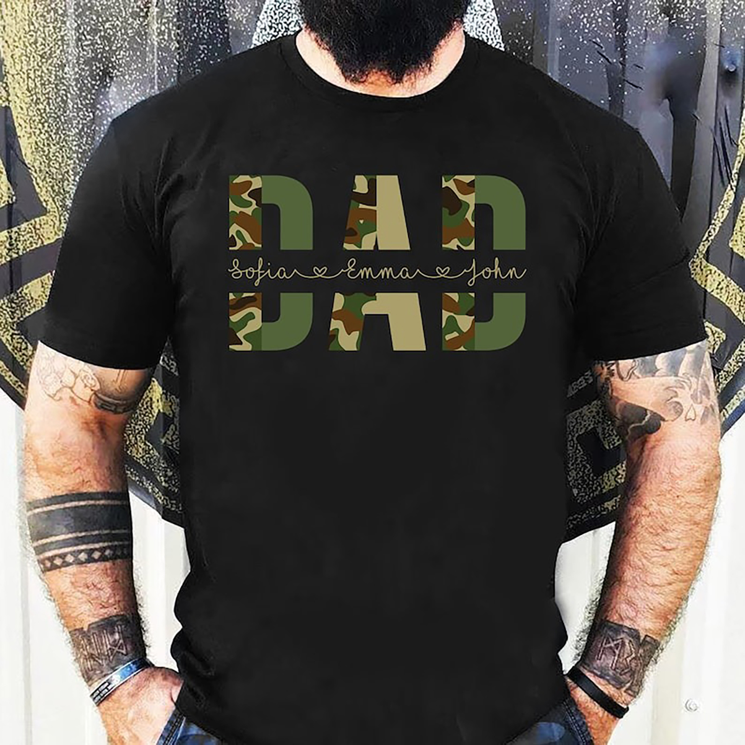 Custom Dad Shirt With Kids Names, Camo Print Personalized Father Shirt, Father's Day Shirt, Custom Kid's Names Papa Shirt, Gift For Daddy If you need any SIZES, DESIGNS, COLORS, please inbox us Product Specification Design & Printed in the USA. Double-needle neck, sleeves and hem; Roomy Unisex Fit Solid colors are 100% cotton; Heather colors are 50% cotton, 50% polyester (Sport Grey is 90% cotton, 10% polyester); Antique colors are 60% cotton, 40% polyester Decoration type: Digital Print Made by Gildan Shipping, Return and Refund Policy On average, merchandise is produced and shipped from our facility 2-4 business days after purchase. Standard Shipping: 5-7 working days for USA. Please contact us if you have any dissatisfaction with the item you buy so that we give you the solution. It is easier for us to handle your issue if you send us the proof like an image. We can replace another within 30 days without fee if the item is defective, damaged, or an error is made on our end.