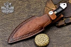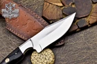 Custom Hand Made DAMASCUS STEEL HUNTING KNIFE WITH BLACK BEAUTY HANDLE We offer a shipping discount for More then one purchased . And discount will be apply on combine invoice, Discount will not apply on separate payment. ITEM DETAILS OVER ALL LENGTH 8.0 inches long (Approx) HANDLE LENGTH 4.0 inches long (Approx) BLADE LENGTH 4.0 inches long (Approx) BLADE HARDNESS 58-60 HRC Which Holds The Sharp Edge For Long Time. HANDLE BLACK BEAUTY COVER LEATHER SHEATH This Awesome custom made KNIFE has a nice hand forged with the combination of 4340 & 1080 steel. HOW OUR DAMASCUS IS MADE: All our Damascus is real and not just an acid etch. Damascus is a mixture of 1080HC and 4340 nickel carbon. You heat them up together and then fold the bar over and over to get the desired layers, ours are 396 layers. Then you burn the blade in acid, and it turns the nickel satin color and the high carbon turns blackish gray. This is how the layers are exposed to show the layers of the new steel created coined "Damascus". All Damascus is acid etched to show the layers. If you high polish the metal it will be shinny satin like all steels. Only after you burn the sides of the blade with acid do you see the layers of the two steels. Makes sense? After we make our knives we high polish the handles and put an edge on the blade. The high polishing buffs off the acid burned layer of the handle, and the blade edge is sharpened and the acid burned edge becomes satin. You can re-burn the tang of the blade near the handles and the edge of the blade and it will show the layers once more. All our knives are hand made, durable and unique ***** YOU WILL RECEIVED THE SAME KNIFE Qality Standards Our Damascus blades are made from high quality non-stainless steels which rival or exceed any Damascus blade made from the 10 series with 4340. Our Damascus combination has taken years to perfect and has been tested under a variety of application which will offer professional performance in categories of toughness, strength (lateral stress) and edge honing and holding ability. In a 5 spot Rockwell test our blades will average near or close to 58 which offers a perfect balances between its toughness and strength.Our blades due to carbon content need to be regularly treated with wax and/or 3 in 1 oil to maintain its superior quality. Questions if you have any question feel free to send us message we aim to answer all questions within 24 hours Feedback If you are not satisfied with our service please contact us before leaving any negative or natural feedback. We will resolve all issues as quickly as possible. Disclaimer We are not responsible for any injuries associated with the use of our tools. Our products are intended for legal use only by responsible buyers. Therefore, we will not sell our products to anyone under the age of 18. Before bidding please check your country laws as some countries Custom don't allow this. If your purchase is held by Custom Authorities in your country/State we will not be responsible for that and no refund will be issued Shipping We offer a 20% shipping discount for More then one purchased . And discount will be apply on combine invoice, Discount will not apply on separate payment We ship within 24 hours after receiving complete payment but this can be delayed due to week ends or Governments and Religious Festivals . . This is beyond our control and we apologize for this inconvenience. Precautions Our Tools are very sharp so open and use them very carefully We are not responsible for any injuries associated with the use of our tools Tips to Care knife 1. NEVER STORE YOUR KNIFE FOR LONG TIME IN LEATHER SHEATH. 2. LEATHER CAN ABSORB WATER, WHICH WILL RUST THE KNIFE. 3. ALWAYS CLEAN THE BLADE AFTER USING WITH OIL OR WAX