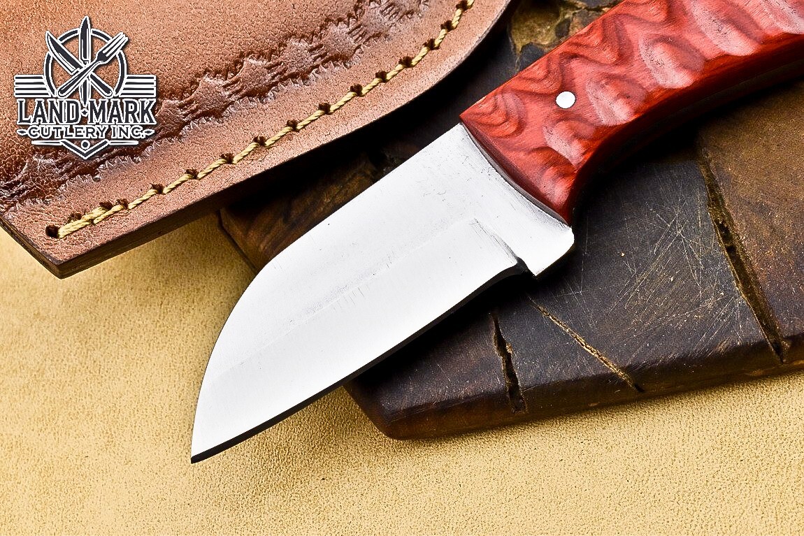 Custom Hand Made D2 STEEL HUNTING KNIFE WITH PAKKA WOOD HANDLE We offer a shipping discount for More then one purchased . And discount will be apply on combine invoice, Discount will not apply on separate payment. ITEM DETAILS OVER ALL LENGTH 3.0 inches long (Approx) HANDLE LENGTH 1.5 inches long (Approx) BLADE LENGTH 1.5 inches long (Approx) BLADE HARDNESS 58-60 HRC Which Holds HANDLE MATERIAL PAKKA WOOD COVER LEATHER SHEATH This Awesome custom made KNIFE has a nice hand forged with the combination of 4340 & 1080 steel. HOW OUR DAMASCUS IS MADE: All our Damascus is real and not just an acid etch. Damascus is a mixture of 1080HC and 4340 nickel carbon. You heat them up together and then fold the bar over and over to get the desired layers, ours are 396 layers. Then you burn the blade in acid, and it turns the nickel satin color and the high carbon turns blackish gray. This is how the layers are exposed to show the layers of the new steel created coined "Damascus". All Damascus is acid etched to show the layers. If you high polish the metal it will be shinny satin like all steels. Only after you burn the sides of the blade with acid do you see the layers of the two steels. Makes sense? After we make our knives we high polish the handles and put an edge on the blade. The high polishing buffs off the acid burned layer of the handle, and the blade edge is sharpened and the acid burned edge becomes satin. You can re-burn the tang of the blade near the handles and the edge of the blade and it will show the layers once more. All our knives are hand made, durable and unique ***** YOU WILL RECEIVED THE SAME KNIFE Qality Standards Our Damascus blades are made from high quality non-stainless steels which rival or exceed any Damascus blade made from the 10 series with 4340. Our Damascus combination has taken years to perfect and has been tested under a variety of application which will offer professional performance in categories of toughness, strength (lateral stress) and edge honing and holding ability. In a 5 spot Rockwell test our blades will average near or close to 58 which offers a perfect balances between its toughness and strength.Our blades due to carbon content need to be regularly treated with wax and/or 3 in 1 oil to maintain its superior quality. Questions if you have any question feel free to send us message we aim to answer all questions within 24 hours Feedback If you are not satisfied with our service please contact us before leaving any negative or natural feedback. We will resolve all issues as quickly as possible. Disclaimer We are not responsible for any injuries associated with the use of our tools. Our products are intended for legal use only by responsible buyers. Therefore, we will not sell our products to anyone under the age of 18. Before bidding please check your country laws as some countries Custom don't allow this. If your purchase is held by Custom Authorities in your country/State we will not be responsible for that and no refund will be issued Shipping We offer a 20% shipping discount for More then one purchased . And discount will be apply on combine invoice, Discount will not apply on separate payment We ship within 24 hours after receiving complete payment but this can be delayed due to week ends or Governments and Religious Festivals . . This is beyond our control and we apologize for this inconvenience. Precautions Our Tools are very sharp so open and use them very carefully We are not responsible for any injuries associated with the use of our tools Tips to Care knife 1. NEVER STORE YOUR KNIFE FOR LONG TIME IN LEATHER SHEATH. 2. LEATHER CAN ABSORB WATER, WHICH WILL RUST THE KNIFE. 3. ALWAYS CLEAN THE BLADE AFTER USING WITH OIL OR WAX
