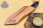 Custom Hand Made DAMASCUS STEEL HUNTING KNIFE WITH RESIN HANDLE We offer a shipping discount for More then one purchased . And discount will be apply on combine invoice, Discount will not apply on separate payment. ITEM DETAILS OVER ALL LENGTH 8.0 inches long (Approx) HANDLE LENGTH 4.0 inches long (Approx) BLADE LENGTH 4.0 inches long (Approx) BLADE HARDNESS 58-60 HRC Which Holds The Sharp Edge For Long Time. HANDLE RESIN COVER LEATHER SHEATH This Awesome custom made KNIFE has a nice hand forged with the combination of 4340 & 1080 steel. HOW OUR DAMASCUS IS MADE: All our Damascus is real and not just an acid etch. Damascus is a mixture of 1080HC and 4340 nickel carbon. You heat them up together and then fold the bar over and over to get the desired layers, ours are 396 layers. Then you burn the blade in acid, and it turns the nickel satin color and the high carbon turns blackish gray. This is how the layers are exposed to show the layers of the new steel created coined "Damascus". All Damascus is acid etched to show the layers. If you high polish the metal it will be shinny satin like all steels. Only after you burn the sides of the blade with acid do you see the layers of the two steels. Makes sense? After we make our knives we high polish the handles and put an edge on the blade. The high polishing buffs off the acid burned layer of the handle, and the blade edge is sharpened and the acid burned edge becomes satin. You can re-burn the tang of the blade near the handles and the edge of the blade and it will show the layers once more. All our knives are hand made, durable and unique ***** YOU WILL RECEIVED THE SAME KNIFE Qality Standards Our Damascus blades are made from high quality non-stainless steels which rival or exceed any Damascus blade made from the 10 series with 4340. Our Damascus combination has taken years to perfect and has been tested under a variety of application which will offer professional performance in categories of toughness, strength (lateral stress) and edge honing and holding ability. In a 5 spot Rockwell test our blades will average near or close to 58 which offers a perfect balances between its toughness and strength.Our blades due to carbon content need to be regularly treated with wax and/or 3 in 1 oil to maintain its superior quality. Questions if you have any question feel free to send us message we aim to answer all questions within 24 hours Feedback If you are not satisfied with our service please contact us before leaving any negative or natural feedback. We will resolve all issues as quickly as possible. Disclaimer We are not responsible for any injuries associated with the use of our tools. Our products are intended for legal use only by responsible buyers. Therefore, we will not sell our products to anyone under the age of 18. Before bidding please check your country laws as some countries Custom don't allow this. If your purchase is held by Custom Authorities in your country/State we will not be responsible for that and no refund will be issued Shipping We offer a 20% shipping discount for More then one purchased . And discount will be apply on combine invoice, Discount will not apply on separate payment We ship within 24 hours after receiving complete payment but this can be delayed due to week ends or Governments and Religious Festivals . . This is beyond our control and we apologize for this inconvenience. Precautions Our Tools are very sharp so open and use them very carefully We are not responsible for any injuries associated with the use of our tools Tips to Care knife 1. NEVER STORE YOUR KNIFE FOR LONG TIME IN LEATHER SHEATH. 2. LEATHER CAN ABSORB WATER, WHICH WILL RUST THE KNIFE. 3. ALWAYS CLEAN THE BLADE AFTER USING WITH OIL OR WAX