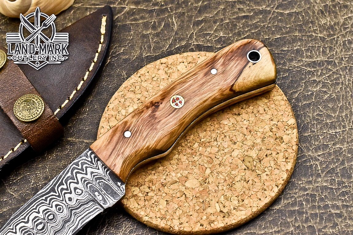 Custom Damascus Steel Hunting Skinner Knife with Olive Wood Handle