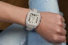 Cartier Santos De Cartier Custom Diamond Stainless Steel and Yellow Watch Brand: Cartier Series: Santos Model: WSSA0018 Case Diameter: 39.5 mm Bracelet: 18k yellow gold & stainless steel Bezel: Custom diamond set Dial: Custom pave diamond Dial Carat Weight: 25.00 carats in total diamond weight The sale includes a jewelry watch box and an appraisal certificate which states the watch's credentials Attached to the appraisal certificate is our 1 year mechanical warranty and lifetime diamond replacement warranty Diamonds are set aftermarket not originally by Cartier