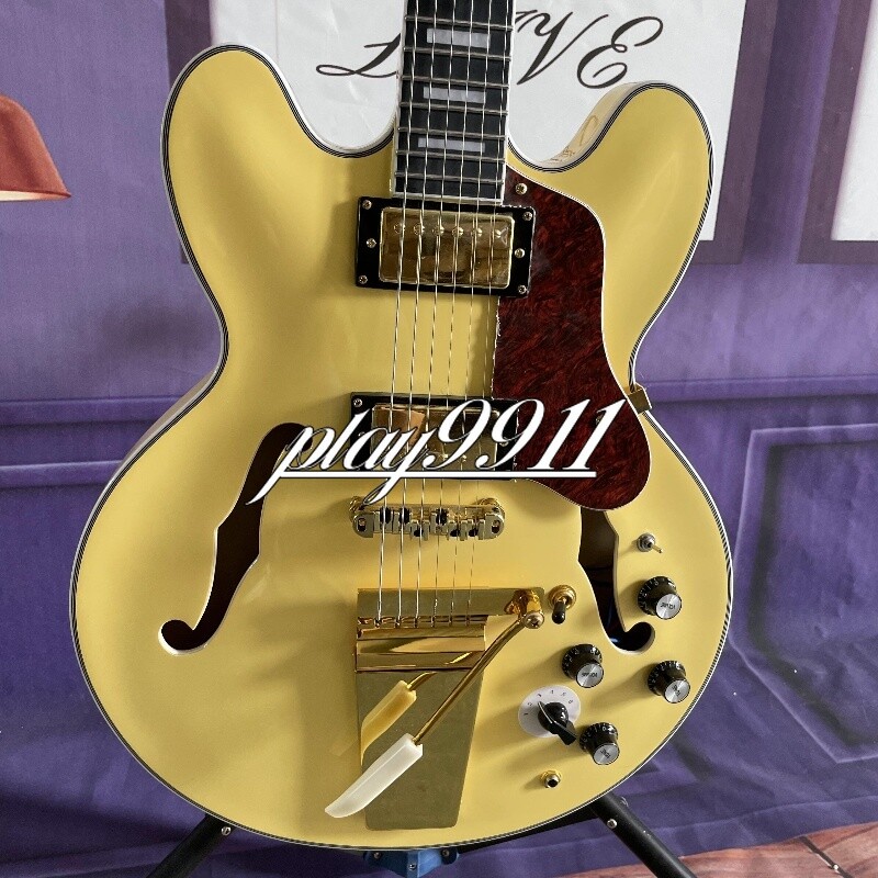 Custom ES Style Cream Semi-Hollow HH Pickups Electric Guitar Gold Hardware Welcome to my store. My team has been making musical instruments for many years. I will try my best to provide the best item for you! Goods condition Body:Mahogany Neck: Mahogany Fingerboard: Black Nut width: 43 mm Scale Length:24.7 inch Joint:Bolt on Hardware:Gold Pickups:2 Humbuckers Pickup Switch: 3-ways Electronic:2 Volume 2 Tone Bridge:Tremolo ABOUT THE PICTURES The pictures are taken in our factories by ourselves. Each guitar is different from others because of the light in room or some other reasons .So there are maybe some differences between the pictures and the guitar you get. Every guitar cannot be the same in 100%, the pictures of the guitar that you see is just one of them. If you want some details about the guitar, please contact me. OUR GUARANT EE We test every guitar (such as buzzing, sound test, workmanship) is in good condition before it is shipped out. When you receive the guitar, if you meet some problems like readjustment the strings or you are not happy with our guitar, please let me know immediately and we will try our best to meet you satisfaction. CUSTOMIZED CEN TER Head stocks are not pictured per our policy. Custom Head stocks are available upon request from our factory custom shop. Please contact us for details. All cutomized products are non-returnable. SHIPPI NG Once payment has been confirmed, your item will be shipped within 3 or 30 business working days. That depends on speciafic goods deliver ways.The speed also base on Custom Clearance Speed, which we can't control .So if you want this for your gig next weekend it probably wont make it on time, so please keep that in mind when ordering. PACKIN G We use the carton which is designed for the International transport to package the products you ordered. And we can guarantee the items will not be damaged in the way of transportation. RETURN POLI CY If the item you received is broken or defective, please contact me immediately and return it within 3 days after you received it with the original or approved packaging. After we received it, we will give you a Full-Refund or Exchange. Buyers are responsible for return shopping costs. If you want to replace it, we will send a new one to you and then forward a shipping label. For missing or replacement parts(from the original order), we will ship them to you. Please read the RETURN POLICY before you order it! FEEDBA CK Thank you for your great comments and feedback. (a) When you are satisfied with your purchase, we sincerely hope that you can give us a positive feedback. Again, we will give you a positive feedback. (b) If you are dissatisfied with your purchase, please contact us submitting a neutral or negative feedback. We will respond to you in 24 hours and work with you until you are satisfied.