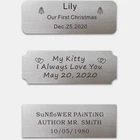 *****FOR THIS PLATE: THREE LINES MAX (35 CHARACTERS MAX PER LINE)***** Please do not type more than the character limit. These plates are custom designed by a graphic artist. View the font and image option thumbnails at the top of this listing. Tell us your font and image of choice, send us your own custom text for engraving, and we will take care of the rest! Included with your plate will be: - Up to three lines of your own custom engraved text (35 characters per line max) - YOUR CHOICE of mounting method. Adhesive backing (already attached for easy mounting) or holes punched with screws included. If you don't request a mounting method, we will place adhesive on the back for easy mounting. - YOUR CHOICE of plate corner style. Choose from squared, rounded or notched. If you don't request a corner style, we will keep your plate squared. - YOUR CHOICE of font from our font library (see thumbnail photos at the top of this listing for options). - YOUR CHOICE of image from our image library (see thumbnail photos at the top of this listing for options). This plate measures: 3" W x 1" H HOW TO ORDER 1. Click "Add to cart” 2. On the checkout page, click the little link that reads, "Message to seller" Plate mounting prep: Adhesive OR holes with screws. Plate corner style: squared, rounded or notched. Fonts available: See thumbnail pictures in this listing for entire font selection. Images available: See thumbnail pictures in this listing for entire image selection. These plates are meant for indoor applications only.