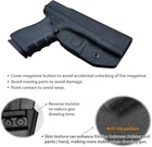 For Gun Make: GLOCK UPC: Does Not Apply Type: Concealment Holster Manufacturer Warranty: Lifetime Level: IWB Kydex Holster Glock Set Includes: IWB Kydex Holster Glock Brand: Unbranded Item Height: IWB Kydex Holster Glock Number of Magazines: 1 Gauge/Caliber: 9 mm Luger, .40 S&W, .45 ACP Material: Kydex, Carbon Fiber, Nylon, Fiberglass Attachment Type: Clip Item Weight: 0.07 kilograms Closure Type: Clip,clips Hand Orientation: Left gtin13: Does Not Apply Item Dimensions Lxwxh: 8 X 5 X 2 Inches Carry Position: 3 o'Clock, 4 o'Clock, 1 o'Clock, 2 o'Clock, 5 o'Clock, 6 o'Clock, 11 o'Clock Size: Left Hand Draw (iwb) Sport/Activity: Shooting Carry Location: Inside Waistband (IWB) Cant: Forward, Neutral, Negative, Horizontal, Positive Item Package Dimensions L X W X H: 9.37 X 7.44 X 1.93 Inches MPN: IWB_Kydex_Holster_Glock Item Length: IWB Kydex Holster Glock Package Weight: 0.07 Kilograms Features: Adjustable Cant, Adjustable Retention Pressure, Portable, Adjustable, Custom Fit, Lightweight, Sturdy, Durable, Sweat-proof, Waterproof, Washable, High Precision, Hidden, Rugged, Cover Mag-Button, No Wear, No Jitter Item Width: IWB Kydex Holster Glock Style: Portable,adjustable For Gun Type: Pistol Model: IWB Kydex Holster Glock Color: Black