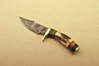 Custom Hand Forged High Damascus S teel Hunting knife, Stag Horn Charming Bolster Leather Sheath Blade of this knife has a nice file work and is made of 512 layers of 4340 stainless steel and 1075 high carbon steel and hardness 55-58 HRC . This robust Blank Blade is lab tested under intense conditions, the balance and shape of this Blank Blade ensures perfect grip. Overall Length: 6” Inches Design: Twist Pattern Layers: 512 Hand Forged Hardness: 55-58 HRC Care Instructions: Keep the blade dry after each cleaning. Warning: Take care when removing product from packaging. Keep fingers clear of blades. Store away from children. Complimentary gift messages *Gift wrapping service available for minimal additional fee We do sell wholesale, please contact us for special discounts on bulk orders. FEEDBACK POLICY: YOUR FEEDBACK IS VERY IMPORTANT FOR US, IF THEIR IS ANY KIND OF PROBLEM PLEASE GIVE US OPPORTUNITY TO SORT THE ISSUE