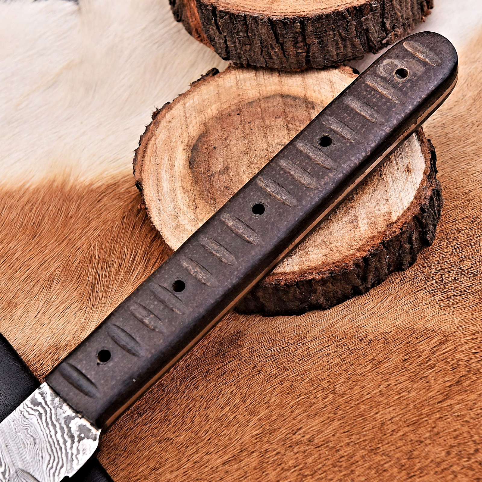 Handforged Damascus Steel Hunting Knife with Custom Leather Sheath