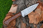 CUSTOM MADE HAND FORGED DAMASCUS STEEL SKINNER KNIFE HUNTING CAMPIN SURVIVAL HIKING KNIFE Wood Handle This superb design knife is hand forged. Blade of this knife has a nice file work and is made of 512 layers of 4340 stainless steel and 1075 high carbon steel and hardness 55-58 HRC . This robust knife is lab tested under intense conditions, the balance and shape of this knife ensures perfect grip. Overall Length: 9" Inches Blade Length: 5" Inches Handle Length: 4" Inches Damascus Design: Rain Drop Pattern Layers: 512 Hardness: 55-58 HRC Package Includes: with Leather Sheath Warning: Keep fingers clear of blades. Store away from children.