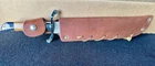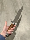 A custom handmade bowie knife with custom handmade leather sheath. I have had this a while, but its been kept in new condition. Unsure of maker this was given to me as a gift about 15 years ago. It comes with a cowhide hand crafted sheath. The blade has not been sharpened. I ship quick! Thanks