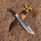 Item details Highlights Designed by Hafiz Crafts Supplies for making crafts Materials: Blade material: Carbon steel; Handle material: Wood Specifications: Blade Length: 16 inches Handle Length: 6 inches The Custom Handmade Carbon Steel Blade Tactical Bowie Knife is a versatile and durable tool designed for hunting, camping, and other outdoor activities. Handcrafted in Pakistan by Hafiz Crafts, this Bowie knife features a 16-inch full tang blade made of carbon steel with a clip point design. The ambidextrous knife has a plain edge and a lanyard hole for convenient carrying, and it comes with a sheath for safe storage. The handle is made of wood, adding a traditional and rustic touch to this original and functional piece. This custom handmade tactical Bowie knife is crafted by Hafiz Crafts in Pakistan, featuring a full tang carbon steel blade with a clip point design. The 16-inch blade has a plain edge and a silver color, making it ideal for hunting and camping activities. The ambidextrous knife has a wooden handle and includes a lanyard hole and sheath for convenience. This unique and original piece is perfect for collectors and outdoor enthusiasts seeking a high-quality and handcrafted tool for their adventures.