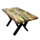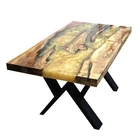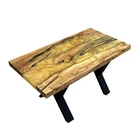 Custom Live Edge Yellow Epoxy Resin Wooden River Style Coffee Side Dine TableTop