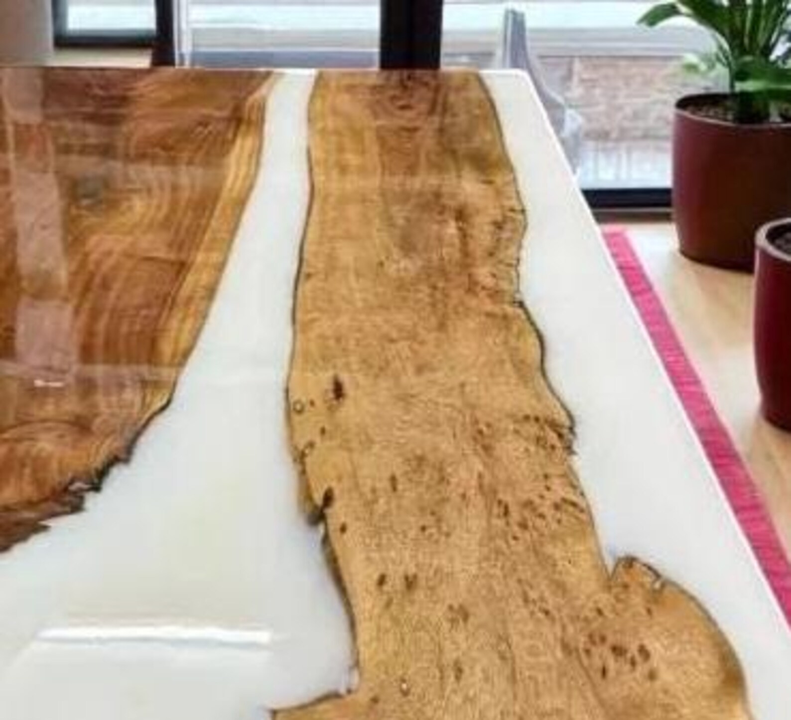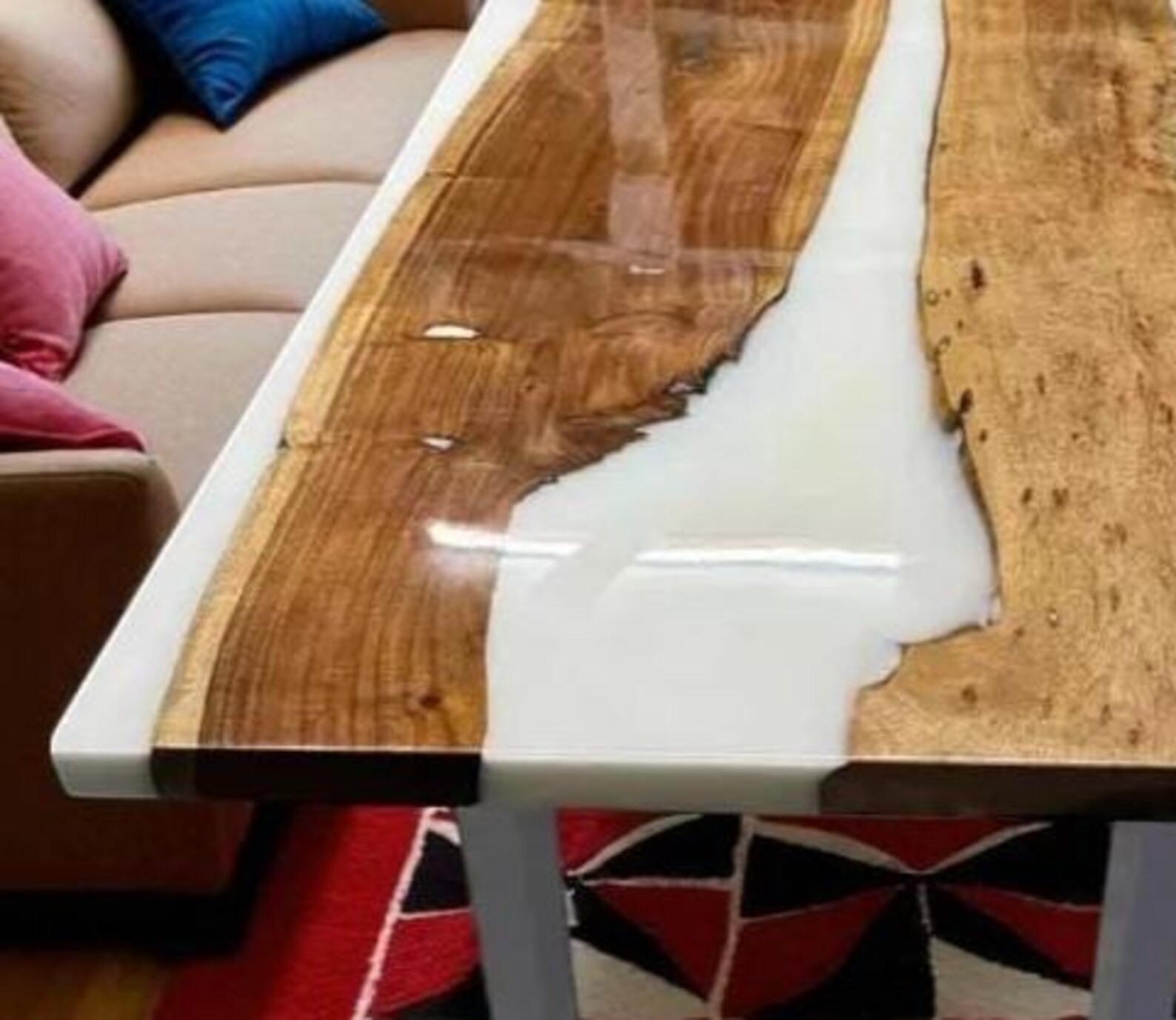 Handmade Live Edge Wood & White Epoxy River Table Top – Custom Luxury Resin Slab Elevate your interior with this Handcrafted Live Edge Wood & White Epoxy River Table Top , a premium artisan-made piece designed to stand out in modern, rustic, and luxury spaces. Featuring natural hardwood grain paired with a smooth white resin river, this tabletop blends elegance with durability—perfect for creating a dining table, coffee table, office desk, or studio worktop. ✨ Product Features Material: Premium natural live edge hardwood (Acacia / Teak / Walnut options) Epoxy Color: Elegant white resin river with a glossy, glass-like finish Finish: High-gloss, scratch-resistant, and UV-protected epoxy coating Thickness: Approx. 32–35 mm Shape: Rectangular table top Legs: Not included (can be added on request) Craftsmanship: Hand-poured, sanded, and polished by skilled artisans 💎 Why This Table Top Is Special Unique wood grain patterns — every piece is one-of-a-kind Smooth white epoxy river enhances contrast and luxury appearance Ideal for home dining areas, boutique cafés, offices, and designer interiors Fully waterproof, heat-resistant, and easy to maintain A premium decorative furniture piece that instantly elevates any space 🛠 Customization Options We offer complete customization: Wood type selection Any epoxy color (blue, black, green, clear, metallic, etc.) Custom sizing Engraving, logo, or personalized design 📦 Shipping & Packaging Production Time: 2–4 weeks (handmade to order) Shipping: Worldwide, fully tracked and insured Securely packed with foam + wooden crate for safe delivery 📌 Notes Due to natural wood variations, every tabletop will have unique patterns, knots, and resin flow—adding to its handcrafted charm. epoxy table top, white resin river table, live edge wood slab, handmade epoxy furniture, resin dining table top, custom wood table top, luxury resin slab, modern epoxy wood desk top