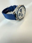 Hand-built mecha-quartz chronograph watch. Genuine Seiko VK63 mecha-quartz date movement, complementary Super-LumiNova hands and dial, case, and rubber strap. For chronograph watches, main dial seconds hand is chronograph seconds. Upper-right pusher starts and stops chronograph. Lower-right pusher resets chronograph. Left small subdial is 60-minute timer. Right small subdial is 24-hour dial. Lower small subdial is small seconds dial. These are built as a hobby and I need to move them after I finish them, so the purchase cost is approximately one-third the parts cost. The watch is run for one week to test functionality, but I cannot warranty the overall longevity of the parts used to construct the watch. Because of this, the watch is sold as-is with the expectation of long-term reliability based on previous builds, but no guarantee given that I cannot verify the individual parts used in the build.