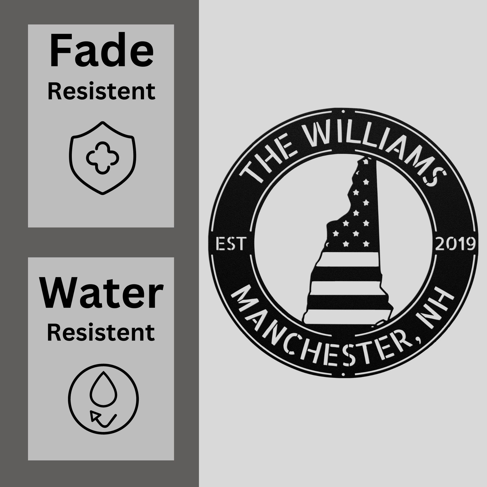 Product Description Celebrate your love for New Hampshire with this beautifully crafted Custom New Hampshire Metal Sign . Made from high-quality 16 gauge metal, this personalized piece is powder-coated to resist dust, weather, and moisture, ensuring it lasts indoors or outdoors. Whether youโre adding a personal touch to your home or looking for a thoughtful gift, this custom metal sign is perfect for any occasion. Designed to fit seamlessly in any space, the Custom New Hampshire Metal Sign is great for your living room, porch, patio, or even your office. You can personalize it with your name, a meaningful date, or a special phrase to make it truly yours. Itโs also an ideal gift for Christmas, birthdays, or housewarmings. Key Features: Personalized Custom Design: Add your name, date, or message for a unique touch. Premium Quality Material: Made from durable 16 gauge metal, built to last. Powder Coated Finish: Dust, weather, and water resistant for indoor and outdoor use. Versatile Decor: Suitable for homes, offices, gardens, and outdoor spaces. Perfect Gift: Great for Christmas, birthdays, housewarmings, or any special occasion. Add a unique, personalized element to your home or gift someone special with this Custom New Hampshire Metal Sign , designed to capture the essence of your favorite state! Service and Color Choice My metal signs are designed to be personalized just for you, making them the perfect addition to any space! The default color is Black , but I also offer a variety of beautiful options including Copper, Gold, White, and Silver . After placing your order, simply contact me with your preferred color choice, and I'll ensure your sign is exactly how you envision it. Letโs create something special together! ๐ How Metal Signs Are Measured Metal signs are measured from the widest point to the opposite widest point of the design. The listed size (8โ, 10โ, 12โ, 18โ, 24โ, 30โ, 36โ, etc.) always refers to the longest edge of the artwork, not the height only and not the width only. Because every design has its own shape and proportions, the other dimension (height or width) will adjust automatically . ๐ Example (30-Inch Size) When selecting a 30-inch sign , the longest side of the design will measure 30 inches . If the design is wider than it is tall: Width = 30 inches Height adjusts proportionally (often around 18โ22 inches depending on the design) If the design is taller than it is wide: Height = 30 inches Width adjusts proportionally This ensures the sign keeps its correct proportions and the original shape, no matter which size is selected. ๐จ Custom Designs & Logos Welcome Have a special idea in mind? I can make it happen! Whether you need a business logo , family emblem , pet silhouette , or a one-of-a-kind design , I can create it from scratch and turn it into a high-quality metal sign. You can send your concept, sketch, or photo, and Iโll handle the custom design, editing, and production from start to finish. Your vision becomes real metal artwork made exactly the way you want it. โจ Custom Any Design: If you have a special idea in mind, I can turn it into a metal sign, just message me! ๐ฆ Ordering & Gift-Ready Each sign is crafted to order with great care and attention to detail. Your piece arrives ready to hang , making it easy to display or give as a thoughtful gift. Whether it's for your home or for someone special, every sign is made to impress and last for years. ๐ Your support means the world to me and my family. Thank you for helping keep this small art business growing. ๐ Production & Shipping Every sign is made to order with a fast turnaround time. Production Time: 1โ2 business days Free Shipping: UPS Ground (estimated 2โ5 business days ) Expedited Shipping: FedEx 2-Day Delivery available at checkout Shipping Location: All orders ship from Indiana, USA Each order is packed securely to ensure your metal sign arrives safely and ready to display.