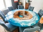 Custom Ocean Resin Epoxy Dining Table Handmade for Home or Hotel Decor