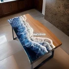 Custom Ocean Resin Epoxy Live Edge Dining Table Handmade Office Desk Decor