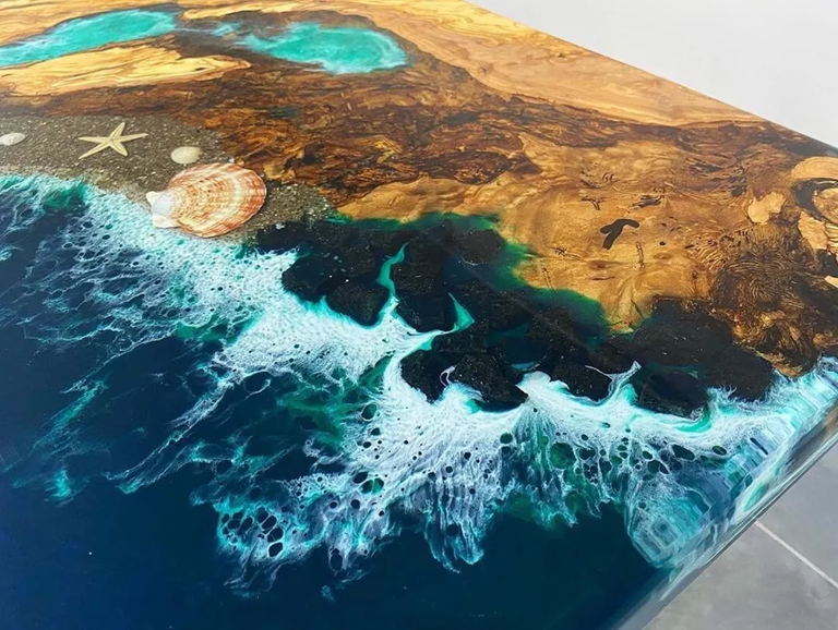 Custom Ocean Wave Epoxy Resin Dining Table Kitchen Slab Decor Centerpiece