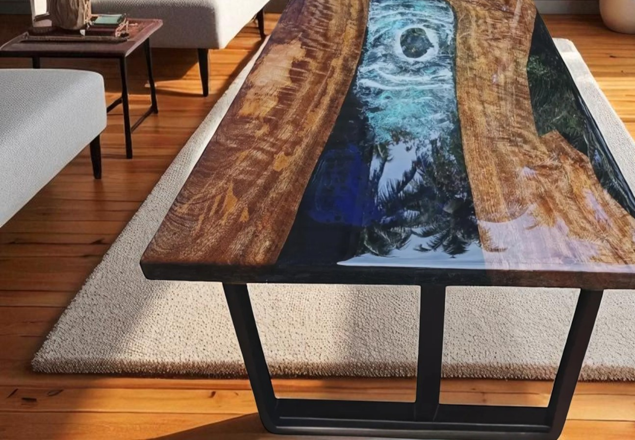 Table Size: 48"X24" Inches Stand Size: 28.5" Inches Tall This is a Epoxy Resin Gaming or Trading Desk made with Walnut which is beautified with colored pigment . The resin river table is brand new and the contemporary design would be a unique addition to your home. With its perfect combination of style and function this piece of furniture is sure to be the star of any room. This modern table will also make for an awesome gift for your friends or relatives. Each one is created with high quality resin and individually handcrafted. Resin is a highly reflective medium which will catch anyone’s eye walking into the room. All tables are finished to the highest standard. The epoxy resin is very strong & durable with specialized UV resistance. The tables are delivered flat packed. Simply bolt the legs. This listing is for a custom Live edge Wooden Table. We have access to thousands of live edge slabs of domestic and exotic species that are imported from around the globe. We use only the highest quality of hardwoods and materials in our work, and believe only in perfection. Kindly Note: As raw wood is used in its natural form and shape to make the table, the table shown in the photos has already been purchased so actual product may vary from the picture shown. Made To Order......