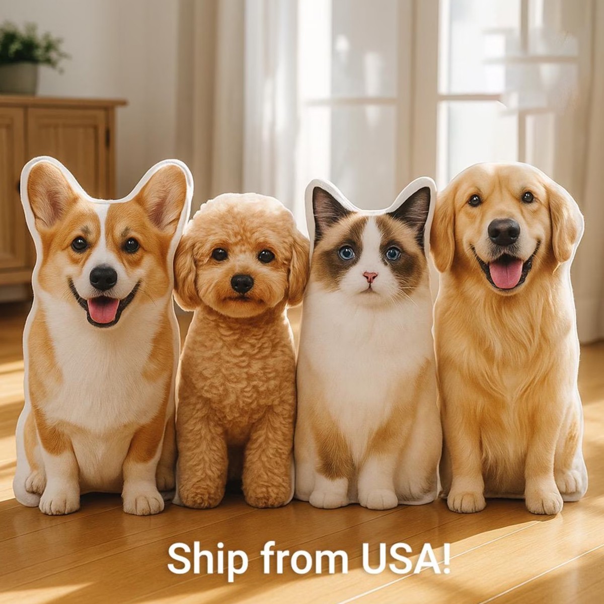 ⭐🐾 CUSTOM PET PORTRAIT PLUSH KEEPSAKE - PERSONALIZED DOG CAT SHAPED PILLOW GIFT 🐾⭐ Capture the essence of your pet with a Custom Pet Portrait Plush Keepsake. This personalized dog cat shaped pillow gift is a must-have for animal enthusiasts. Our plush pillow cases are soft to the touch and feature a vivid, single-sided print of your favorite animal photo. It's a funny and sweet gift for friends or a charming addition to your own living room. Simply upload a clear photo and we will create a custom cushion you'll love. ⚠ IMPORTANT: Please select the correct variant before checkout. Pillow Case and Pillow with Insert are different products. 🧸 VARIANT OPTIONS: Plush Pillow Case (Cover Only – No Insert) Pillow cover only (NO filling) Velboa fabric – soft & lightweight Invisible zipper closure Plush Pillow (Includes Pillow Insert) Complete pillow with polyester fiber insert Plush Velboa fabric – soft & huggable Invisible zipper, removable cover ⭐ PRODUCT INFO: Custom cut-to-shape design Great for sofa, bedroom, car, office, kids room Lightweight & travel-friendly No white border around the design 🐾 CARE: Machine wash cold (gentle). Tumble dry low. Do not bleach.