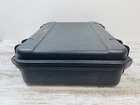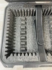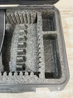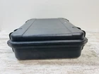 The SKB case comes with its original foam interior and keys, I am unsure of the model, but the internal foam dimensions for the large compartment are 10“ x 13 3/4“ x a max of 2 1/2, with the ripples and measures one and 5/8 inches H. The medium size compartment measures 7“ x 2 3/8“ x 2 1/2 inches. The smaller compartment measures 4 1/2 inches by 2 3/8“ x 2 1/2“. The case was inspected on 6/15/05. It comes with an attached billfold with two compartments and three snappable CD cases. There are scratches on the exterior of the case mainly on the bottom, but they are on the top as well. The foam on one side has separated slightly from the bottom foam.