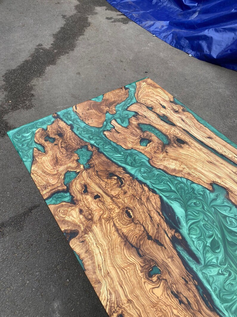 $ 201.75Wood Dining Table, Custom Blue Epoxy Dining Table, Ocean Epoxy Table Top Decor
