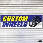 Custom Wheels Banner Auto Repair, Tire Dealer, Service Bay, Garage Sign 13 oz Indoor/Outdoor Vinyl Full Color High Definition Imprint Hemmed Finished Edges Grommets every approximately every 2ft.