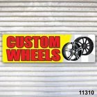 Custom Wheels Banner Material: • 13 oz indoor/outdoor vinyl Features: Full color high definition print Hemmed finished edges for added durability. Grommets for hanging approximately every 2ft.