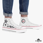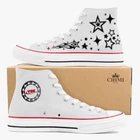 Custom Y2K fashion canvas sneakers, classic white high top sneakers, star design