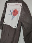 Custom smoking femme trench coat. Size XL-XXL. Flat measurements included. Grey color. Zipper liner is included. Splatter paint around the graphic piece I embroidered onto the back. I will be adding more stitches to make sure its completely attached.