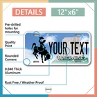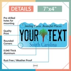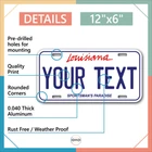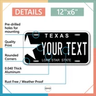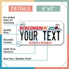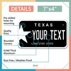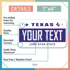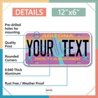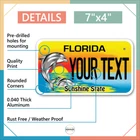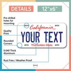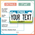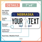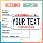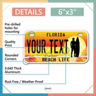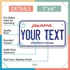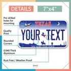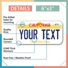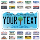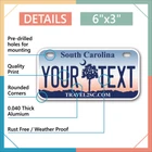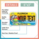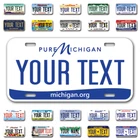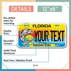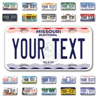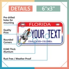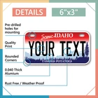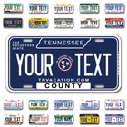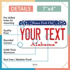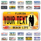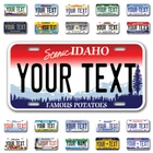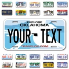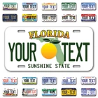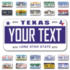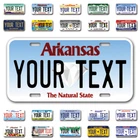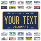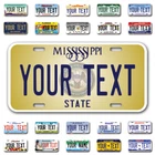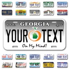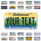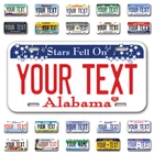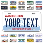 Our LICENSE plates are the most unique souvenirs from the United States, Choose between 50 states and 3 different sizes. Cannot be used in place of a state issued plate. IMPORTANT DESCRIPTION • Plates are made using High quality thick 040 rust free Aluminum. • Our plates are printed flat, not raised. The customizing is done using the latest UV Laser technique for weatherproof and high-quality finish. • 100% made in USA. • Standard car plate has four holes and can be used for trucks, motor homes, and more • M otorcycle plates have 2 holes on top for mounting and can be used on ATVS, Mopeds, Snowmobiles, wheelchairs and golf carts • B ike plates have two holes on top and can also be used for toy cars, wagons, electric toy cars, tricycles and more • Write your text in the personalization section. The text will be copied and pasted on the license plate as sent, so make sure of the spelling, punctuation, capitalization, etc. If you have any question regarding your text or you would like a preview, please let us know by adding a note or contacting Alabama | Alaska | Arizona | Arkansas | California | Colorado | Connecticut | Delaware | Florida | Georgia | Hawaii | Idaho | Illinois | Indiana | Iowa | Kansas | Kentucky | Louisiana | Maine | Maryland | Massachusetts | Michigan | Minnesota | Mississippi | Missouri | Montana | Nebraska | Nevada | New Hampshire | New Jersey | New Mexico | New York | North Carolina | North Dakota | Ohio | Oklahoma | Oregon | Pennsylvania | Puerto Rico | Rhode Island | South Carolina | South Dakota | Tennessee | Texas | Utah | Vermont | Virginia | Washington | West Virginia | Wisconsin | Wyoming
