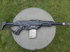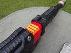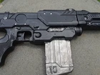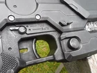 Customized Nerf Blaster Intended for costume and cosplay. Comes with a 24 pack of Nerf Darts Completely repainted in inspiration of the blasters seen in Star Wars. Under the slide remains unpainted for function and safety. All detailing and weathering is hand painted. Weathered to reflect intense field use: Paint scrapping and fading from handling Grim and carbon build-up on the magazine Heat staining and carbon scoring on the muzzle Measures: 29.5" long 8.25" tall with magazine 7" tall grip bottom to frame top 1.25lbs