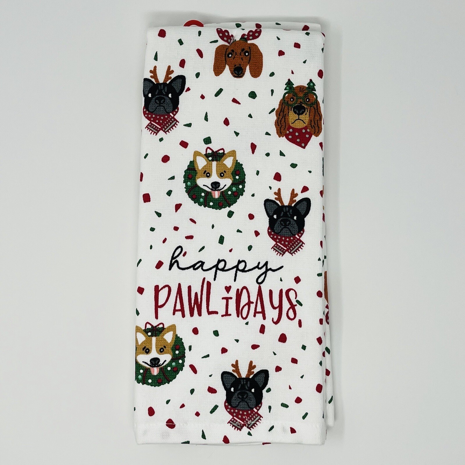 Happy Pawlidays 2 Pack Kitchen Christmas Decor Hand Towels Multi Dogs Cute NEW