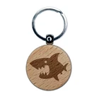 Cute Shark icon Engraved Wood Round Keychain Tag Charm