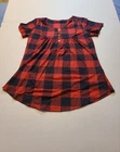 This Cute & Soft Women's Plaid Red and Black Top in size Medium is a versatile piece for any wardrobe. Made from 95% polyester and 5% spandex, this knit blouse features a round neck, short sleeves, and a button closure. Perfect for travel, casual outings, or workwear, this top offers a comfortable regular fit with a classic theme. The red and black color combination adds a touch of style to this easy-care and stretchy top, making it a great choice for the summer, fall, or spring seasons. See photos for measurements approximate. NWOT