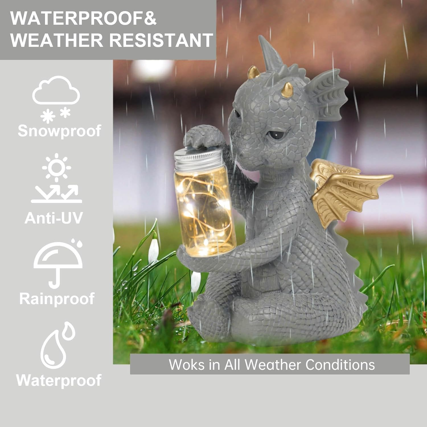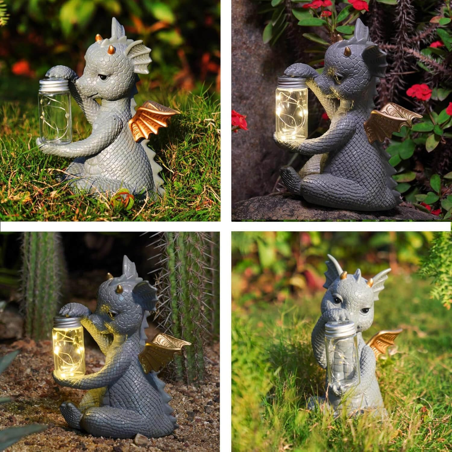 Store New Arrivals Add to Favorite View Feedback Contact Solar Dragon Garden Statues - Cute Dragon Baby Holding a Solar Jar, Outdoor Lawn Décor for Garden Yard, Balcony and Home, for Women Description 【GARDEN DECOR WITH SOLAR LIGHT】Illuminate your outdoor space at night with this adorable baby dragon holding a solar jar that emits a warm glow as the sun goes down. Fully charged under the sun for 6-8 hours, will glow for about 8 hours. Size: 4" x 6.8" x 8.5" 【EXQUISITE WORKMANSHIP】Crafted from the finest resin, meticulously hand painted, these solar garden decorations are an excellent way to add cute and whimsical decor and soothing accent lighting to your outside garden, front porch, patio, lawn, yard, balcony, and bedrooms. 【GARDEN STATUES OUTDOOR CLEARANCE】All of our decorative animals garden sculptures are constructed with resin material to stand up to changeable weather seasons. With UV resist coating, these statuaries are built for years of enjoyment. A worthwhile investment to your home and garden. 【HOUSEWARMING GIFTS NEW HOME】Decorate your garden with this cutest dragon garden figurine. With its addorable looking, this outdoor sculpture will bring joy to anyone who set eyes on it. Addding a lot of charm and fun to your outdoor space. 【PERFECT GIFT FOR CHOICE】Impress your female friends or loved ones with this addorable hedgehog garden sculpture that brings fun and liveness to your home and garden. Great gift choice for Birthdays, Father’s Day and other holiday occasions. Product Description Is there a discount to get all these cuties? Yes, please conatct the seller for special code. How long does it light up? 6-8 hours after full sun charge More Popular Statue From Dilicoming Add to Cart Add to Cart Add to Cart Add to Cart Add to Cart Customer Reviews 4.8 out of 5 stars 33 4.5 out of 5 stars 39 4.4 out of 5 stars 33 4.6 out of 5 stars 21 4.5 out of 5 stars 120 4.7 out of 5 stars 4 3.7 out of 5 stars 8 Price — — $13.65 $ 13 . 65 $31.99 $ 31 . 99 $26.99 $ 26 . 99 $29.99 $ 29 . 99 $159.99 $ 159 . 99 Dimensions 5.2 x 4.4 x 11.3 Inch 4.8 x 6.6 x 8.2 Inch 5.4 x 4.4 x 8.2 Inch 8.5 x 4.5 x 11.3 Inch 4 x 6.5 x 8.5 Inch 7.1 x 5.7 x 10.4 Inch 14 x 11 x 22.5 Inch Material Resin Resin Resin Resin Resin Resin Resin Applications Garden, Yard, Patio Garden, Yard, Patio — Garden, Yard, Patio Garden, Yard, Patio Garden, Yard, Patio Garden, Yard, Patio Solar Light ✔ ✔ ✔ ✔ ✔ ✔ ✔ Indoor Décor ✔ ✔ ✔ ✔ ✔ ✔ ✔ ABOUT US Welcome to our Ebay store! FAST FREE SHIPPING ON ALL PRODUCTS! Please look through our selected quality items to see if you can find what you are looking for or to discover new and exciting things. Our main goal is to bring you the best services which includes quality products at the best prices, fast free shipping and great customer support ! SHIPPING We ship to the Lower 48 States only (Does NOT include Hawaii or Alaska) We cannot ship to PO Boxes/APO's We cannot combine shipping. No Local Pickup. NOTE: we ship from multiple locations We offer FREE STANDARD DELIVERY 2-8 business days within USA. The item will be shipped directly from our supplier. RETURNS We have a NO returns policy on this product , but we will make sure you receive it in perfect condition( in case of damage on arrival let us know within 2 days for a solution/replacement). PAYMENT We accept PayPal. CONTACT US This page content is yet to come Please ad us to your favorite seller and visit again later Thank You CUSTOMER SATISFACTION If you have a question about a product not otherwise answered in the item description, please contact us via eBay messages first and allow us the opportunity to help you. Your satisfaction is our #1 priority ! In any situation before opening a case please do contact us for a resolution!!