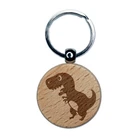 Cute Tyrannosaurus Rex Dinosaur Engraved Wood Round Keychain Tag Charm