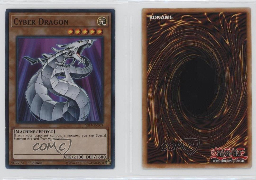 2017 Yu-Gi-Oh! Starter Deck: Link Strike - [Base] - 1st Edition #YS17-EN008 Cyber Dragon COMC Item: 229565852 - YuGiOh Card - Featuring Cyber Dragon Search for more: 2017 Yu-Gi-Oh! Starter Deck: Link Strike Search for more: 2017 Yu-Gi-Oh! Starter Deck: Link Strike - [Base] - 1st Edition View all of our Listings Auctions Buy It Now About Us Located in the beautiful Pacific Northwest, COMC (Check Out My Cards) is the world's largest consignment service for trading card singles. More than 10,000 people have used our consignment service to list over 50 million trading cards. Find out how we can help you consign your items on eBay by contacting us through eBay messaging. COMC -- "The Safe & Easy Way to Buy & Sell" Raw Condition for Modern Cards Unless otherwise noted, raw modern cards are listed in Near Mint-Mint condition or better. A NM-MT card appears to be Mint at first glance, but upon closer inspection, may exhibit some of the following: minor print defects (e.g. roller marks, print line, dimple), minor scratches, slight edge wear, and slight corner wear. Centering is clearly visible in the images provided and does not factor into our condition assessment. Raw Condition for Vintage Cards Unless otherwise noted, raw vintage cards are listed in Excellent condition or better. An EX card may exhibit some of the following: minor rounding of corners, surface wear, print defects, light scratches, and slight edge wear/chipping. Centering is clearly visible in the images provided and does not factor into our condition assessment. Domestic Shipping Combined shipping for multiple items is available. To receive combined shipping, please ensure all desired items are in your eBay shopping cart before proceeding to checkout. eBay limits orders to 40 items per order. We automatically combine multiple orders placed on the same day. If you place multiple orders on the same day, please contact us to request a refund of applicable shipping costs. Signature confirmation may be required on invoices over $400. All cards are protected and shipped securely. International Shipping COMC offers eBay's International Shipping (EIS) for international orders under $2,500* (see country exceptions below). All duties and import fees are paid at checkout; in the rare event that there are additional import fees upon delivery, these are borne by the buyer. EIS packages route through a shipping hub in Erlanger, KY before shipping to their final destination. Please note that EIS does not allow for combined shipments. The shipping rates are determined by eBay and cannot be adjusted. *Maximum sale price exceptions: Colombia, Kuwait ($2,000); Taiwan ($1,539); Chile, Costa Rica, Guatemala, Honduras, Trinidad and Tobago ($1,000); Antigua and Barbuda, Aruba, Belize, Dominica, Grenada, Philippines, Saint Kitts and Nevis, Saint Lucia, Montserrat, Turks and Caicos Islands ($500); Dominican Republic, El Salvador ($200). Please request a shipping quote through eBay messaging for orders that exceed the maximum sale price supported by eBay's International Shipping. You will be responsible for all duties and import fees for international orders shipped outside the EIS. All cards are protected and shipped securely. Payment COMC does not accept offers on our cards through our eBay storefront. COMC utilizes eBay’s managed payments system. If you are experiencing difficulties making a payment, please contact eBay for assistance. Return Policy Returns are only accepted on the rare occasion the item is not as described. If you are making a return, please initiate the return process through eBay so a mailing label can be provided for you. Prior to listing, our expert team carefully assessed this item to represent it accurately. Please review the description and high-definition images prior to purchasing to ensure this item meets your satisfaction. We welcome you to contact us if you have further questions about this item. Trust and Integrity COMC carefully assesses each item consigned to us to prevent fraudulent items from entering the marketplace. If you believe an item offered on COMC may be fraudulent, please contact us with details so we can investigate the issue. Items we determine are outside our supported items policy may be removed. Last Modified: 6/3/2025 8:40:04 AM PDT
