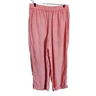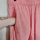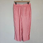 Cynthia Rowley 100% Linen Pants Pink Orange Women's Large Summer Coastal Casual Beautiful summer pants from Cynthia Rowley! These lovely pants are done in a light pink-orange 100% linen. There is a white thread woven in with the pink. Full elasticized waist and side pockets. Back patch pockets. Cropped length Side slits Size L Large Approximate Measurements: waistband - 15" across hips - 20" rise - 12.5" inseam - 23" Excellent pre-owned condition, no rips, tears or stains. Smoke free, dog friendly home. casual beach island travel vacation vaca bohemian spring summer coastal grandma breezy effortless resort cruise lightweight lagenlook rustic dopamine