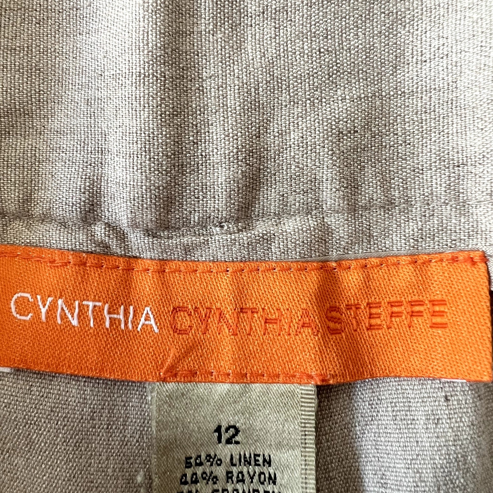 Cynthia Steffe Womens Linen Blend Wide Leg Pants Beige Size 12 54% Linen / 44% Rayon / 2% Spandex Condition: Excellent, pre-owned Size: Women's 12 Measurements (approximate, laying flat) Waist: 16.5" Length: 31" Lagenlook, Beachy, Beige, Capsule Wardrobe, Minimalist, Wear to Work, Coastal